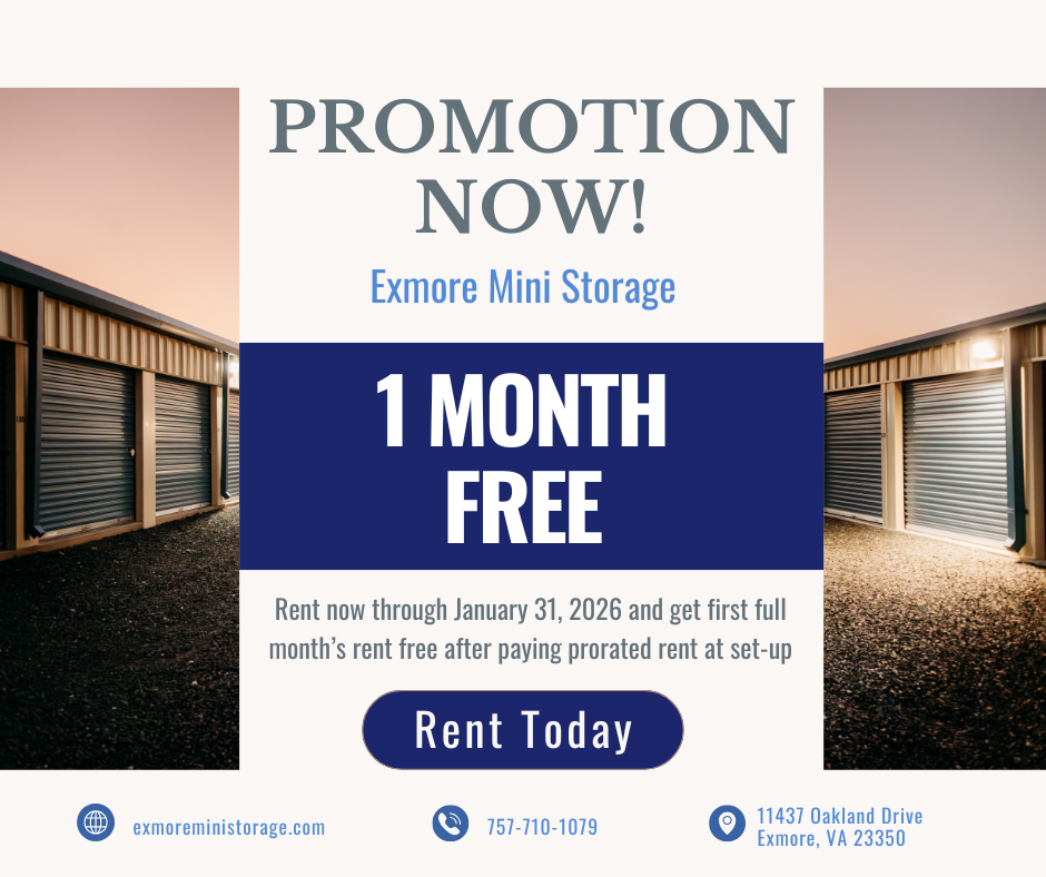 Exmore Mini Storage takes pride in offering a simple and hassle-free self storage experience for all of our customers. We make sure our storage units are clean, secure, and ready to rent. We also focus on offering a wide variety of storage unit sizes and types to make sure we can handle any self storage need that you may have. Exmore Mini Storage also offers online rentals and online bill pay 24/7 to make your experience quick and easy. Feel free to look at our available storage units and give us a call if you have any questions or simply rent your unit right on the website.